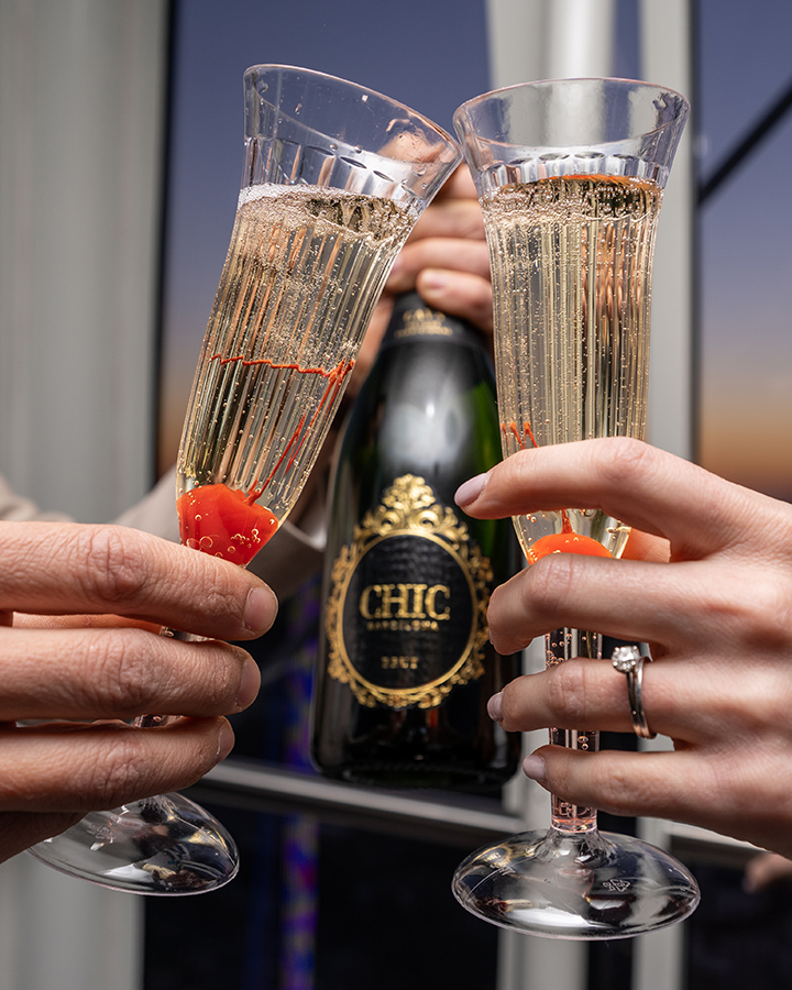 - One bottle of sparkling wine with a keepsake coozie (Both guests must be at least 21 years old)