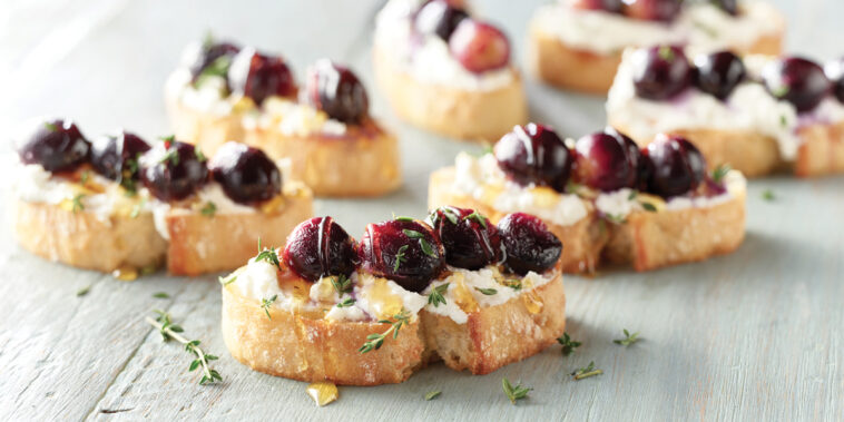 Roasted Grape Crostini with Lemon Ricotta and Thyme