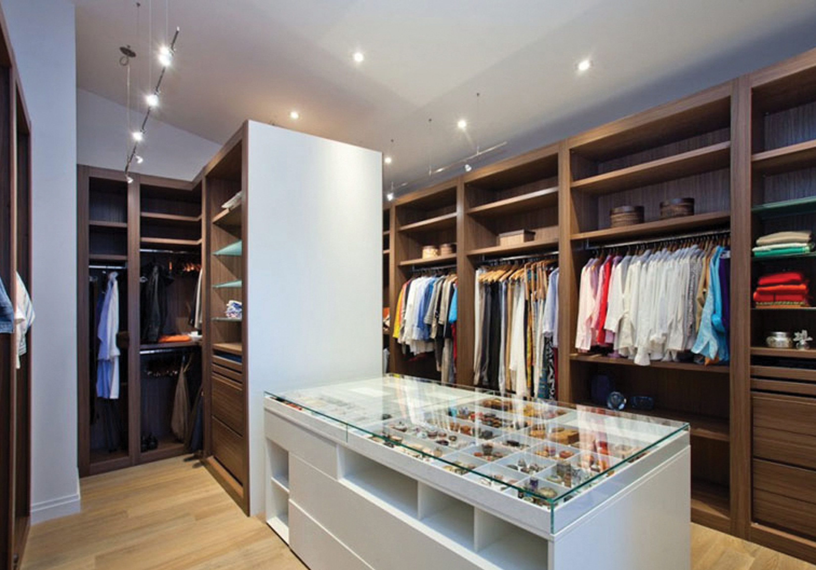 The purpose of a closet island is twofold. It offers surface area to fold laundry or to organize items you’re preparing to pack for a trip, and its drawers are the perfect spot for keeping all of your jewelry tidy and easy to find.