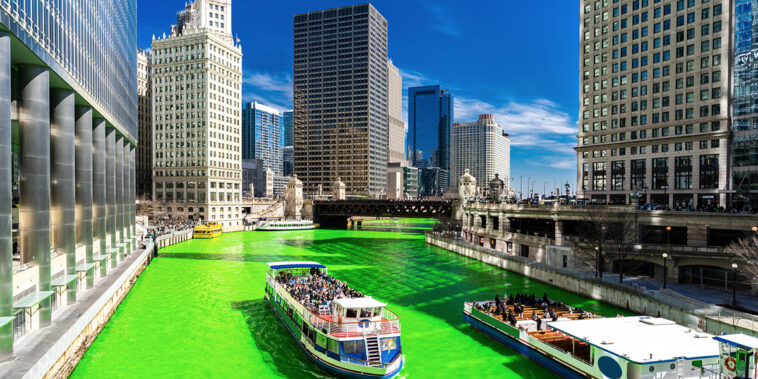 Chicago: Almost half a million people flock to see the famous dyeing of the Chicago River each year, followed by pub crawls, parties and parades.