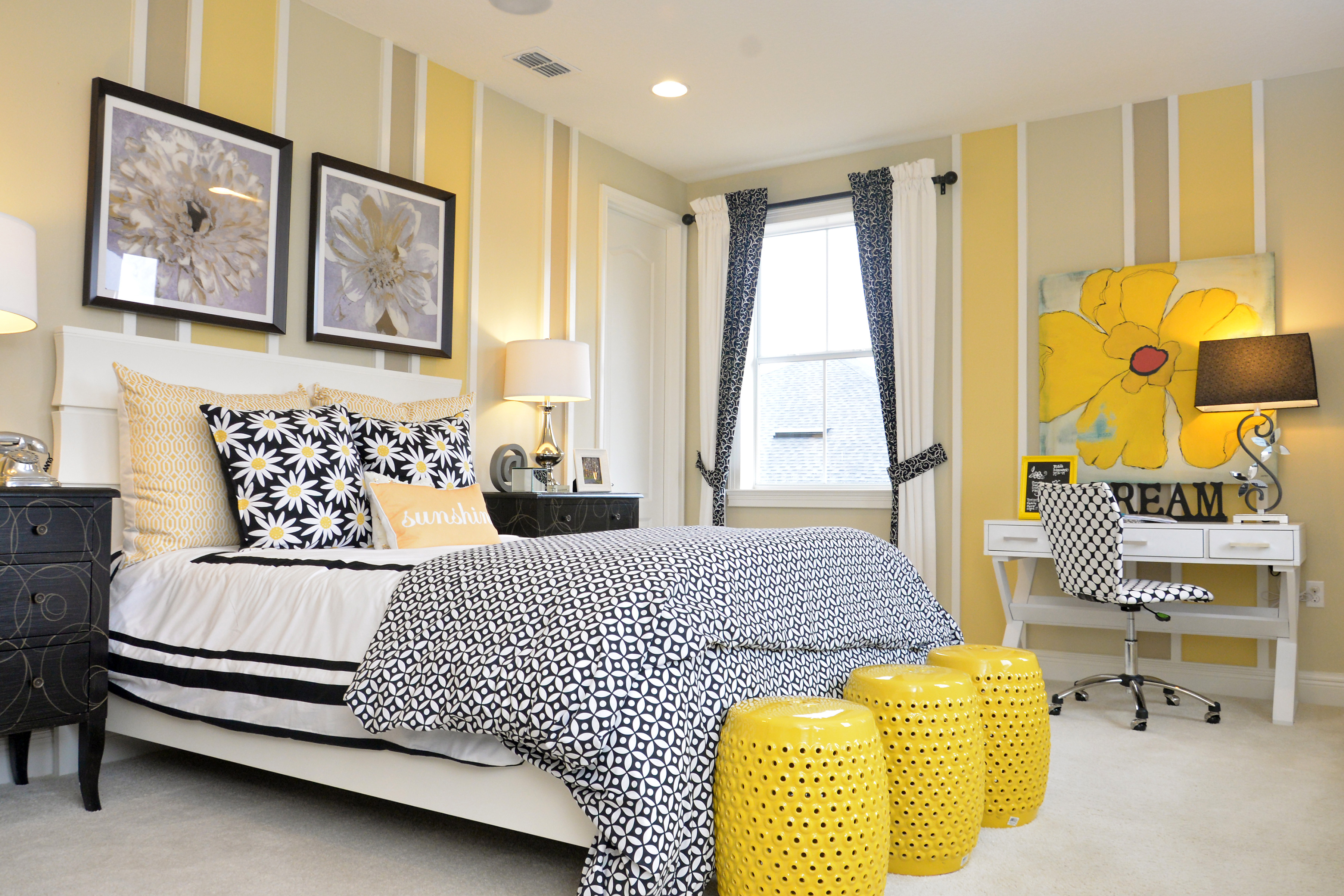 If your child is heavily involved in a sport or other activity, you can promote that in themes for their bedroom. Decals are an easy and affordable way to focus on the activities that your child loves without committing fully to the design, as they are easy to replace as interests shift. Add other visual elements, like stripes, but be sure to use high quality painter’s tape to get the lines just right.