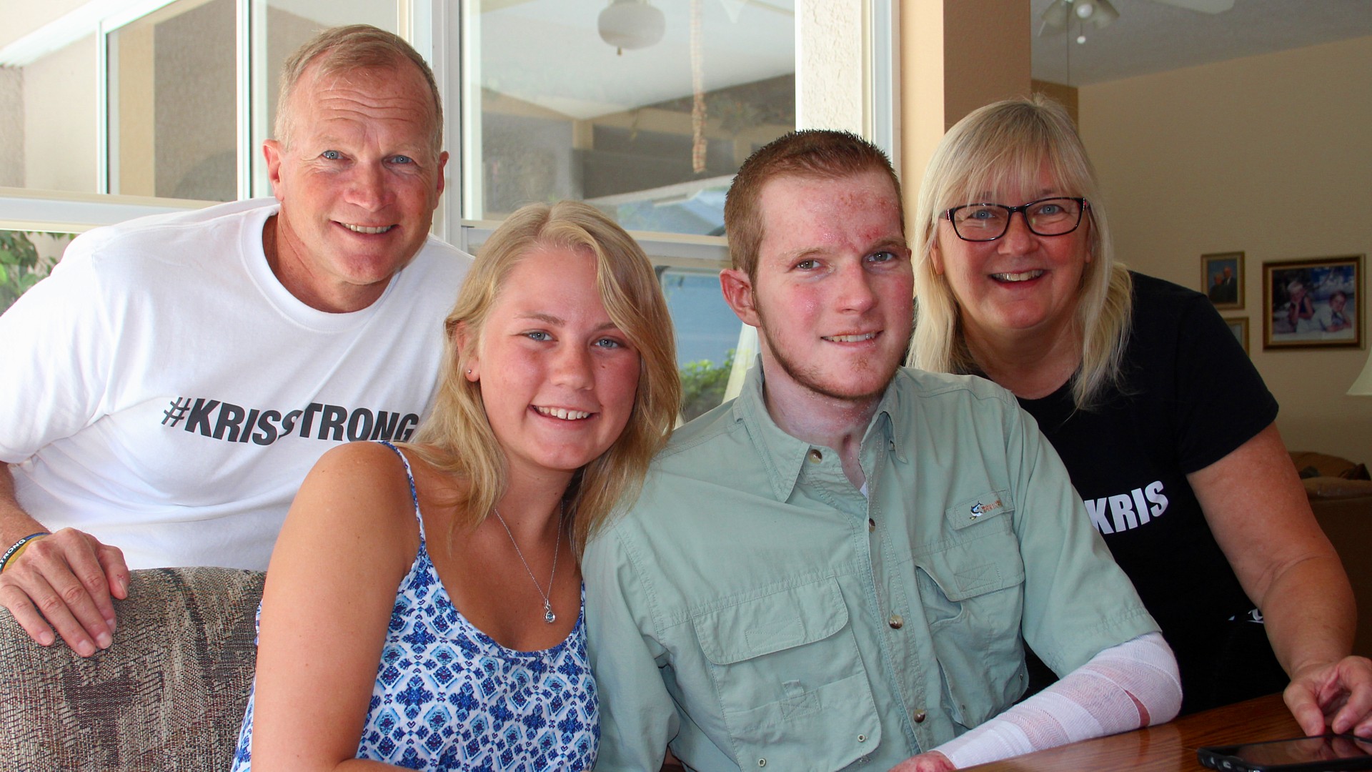 “It has helped tremendously,” Kris says of the well wishes. “I don’t know where we’d be without it. I was in the hospital out cold, and it gave my parents something to read and helped them feel good. Also, when I woke up, I had millions of nice messages to read.”