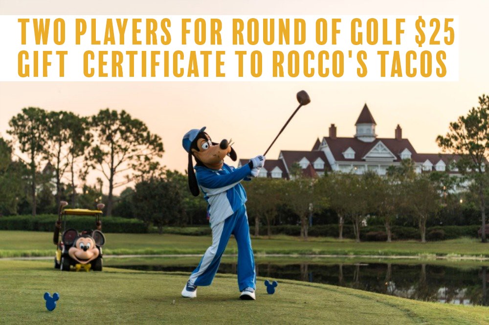 Two (2) players for round of golf at Walt Disney World Golf and a $25 gift certificate to Rocco’s Tacos.