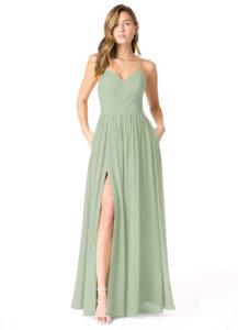 A-Line Pleated Chiffon Long Dress Dusty Sage