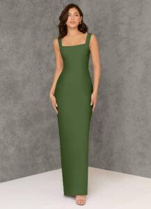 Fitted Square Neckline Chiffon Long Dress Olive